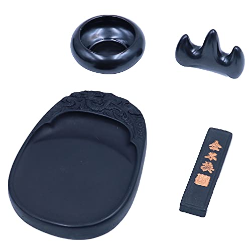 Il set completo include: 10 pezzi, 3 pennelli per calligrafia cinese, 1 pietra per inchiostro cinese, 2 guarnizioni cinesi, 1 bastoncino per inchiostro cinese, 1 spazzola per pennelli cinese, 1 ciotola in porcellana, 1 confezione regalo.