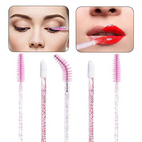 Pennelli per ciglia e correttore, 50 bacchette usa e getta per mascara + 50 pennelli usa e getta, bacchette per labbra e pennelli per ciglia, kit perfetto per il trucco (rosa)