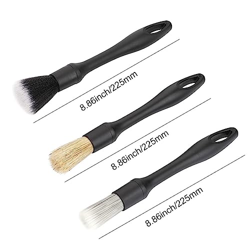 Pennelli Detailing Auto, Pennello Pulizia Auto, Spazzole Pulizia Auto, Pennello per Dettagli Auto, Set di Spazzole per Auto con 3 Setole di Diversa Durezza, per Pulire L'esterno Dell'auto, L'interno