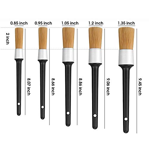 WHK Set di pennelli per Dettagli, 5 Pezzi Manico in plastica Spazzole per Dettagli automobilistici Spazzola Morbida per Ruote Spazzola per Interni Auto
