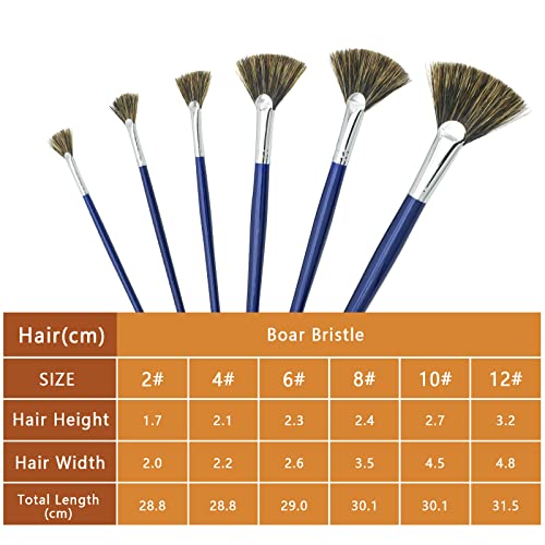 Pennelli per Dipingere a Ventaglio Setole di Cinghiale 6 Pezzi, per Acrilico Olio e Acquerello Pittura Professionali, LEA-SHALL Set Pennello Arte ad Artisti con Manico Legno Lungo