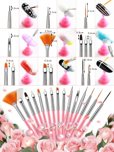 Accessori professionali per unghie: 29 set di pennelli per unghie. Include: 8 pennelli per unghie floreali di diverse dimensioni, set di 15 pennelli per nail art (7 strumenti di pittura 3 strumenti di disegno 2 fodere 1 strumento di punteggiatura 2 pennelli a ventaglio per effetto nail art). penne per punteggiare le unghie. 1 pz Gel Picker e Nail Pusher Peeler Raschietto.