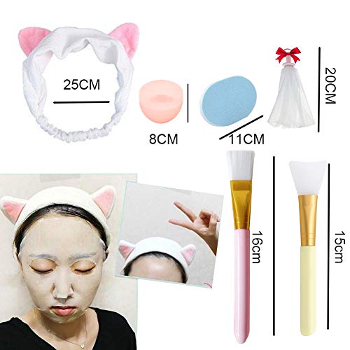 Set di 9 Pennelli per Maschera Fascia per Capelli Elastica con Orecchie di Gatto e Spazzola per La Pulizia del Silicone, Utilizzata per Fango Maschera per Il Viso Fai-da-te, Maschera per Occhi, Ecc