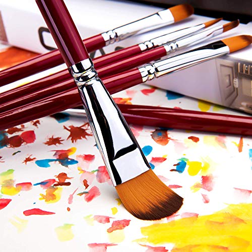 Set di 6 pennelli in 6 misure, punta a forma Filbert, con setole in pelo di martora e donnola e manico in legno di betulla, per pittura ad acquerello, in acrilico e micropittura.