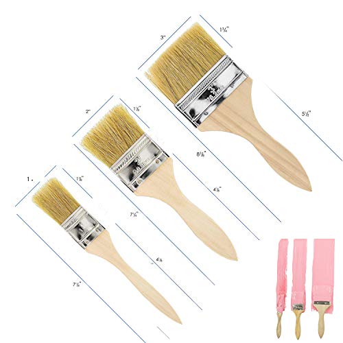 3 Pennelli, Pennello Con Manico In Legno, Pennello Lucido, Adatto Per Pittura a Olio, Muro, Recinzione e Pittura Per Legno, Vernice, Macchia, Colla e Gesso