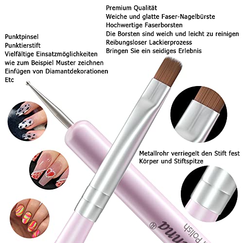 Set di 6 pennelli per nail art in acrilico, per unghie in gel, UV, per nail art, per pittura professionale, set di spazzole multifunzione per unghie per gel UV e unghie acriliche (set 1)