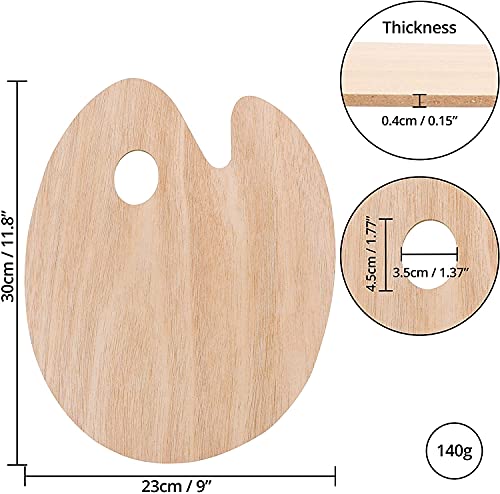 TAVOLOZZA ACQUERELLI LEGGERA: La tavolozza per dipingere è comoda da impugnare e facilita la miscelazione di diversi colori di vernice mentre si lavora sul proprio capolavoro. È realizzato in legno di betulla ed è modellato nel tradizionale stile artistico ovale. Questa tavolozza pittura leggera pesa 140 grammi e misura L30 x L23 cm con uno spessore di 4 mm. Il foro per il pollice misura L4,5 x L 3,5 cm.