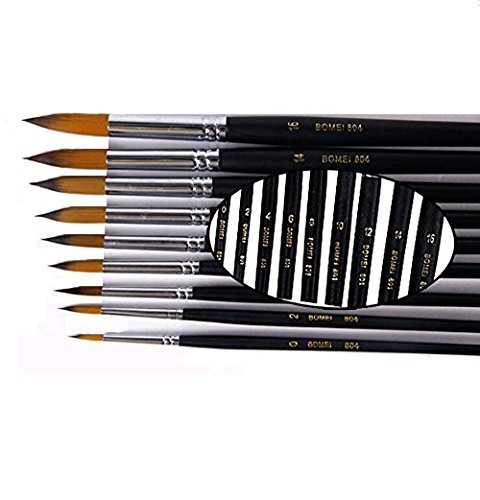Set di 9 pennelli professionali per pittura ad acquerello, punta rotonda, in nylon, per pittura a olio acrilica