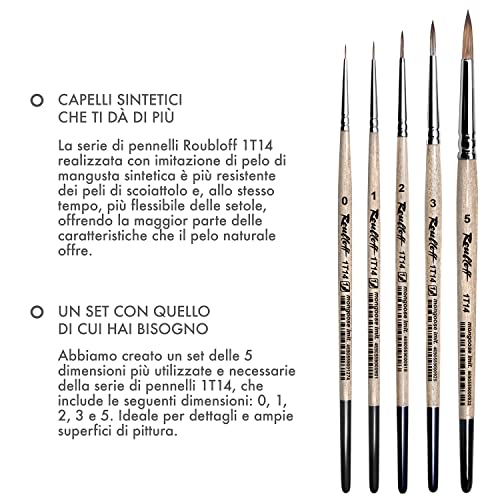 Set Di Pennelli Roubloff Professional Mongoose Imitation | 5 Pennelli Sintetici Rotondi Nelle Taglie 0 1 2 3 5 | Utilizzare Con Acrilico, Acquerello, Guazzo E Colori Ad Olio