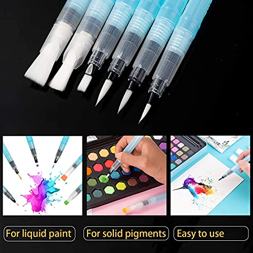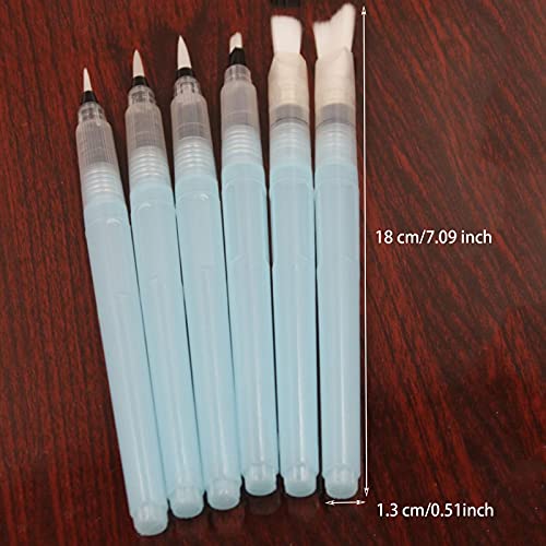 Pennelli con Serbatoio ad Acqua Penne ad Acqua con Pennello Pennelli per Acquerell con Serbatoio Riempibile Pennelli per Acquerello, Pennelli ad Acqua Punta Fine/Media/Grande 6 Pezzi