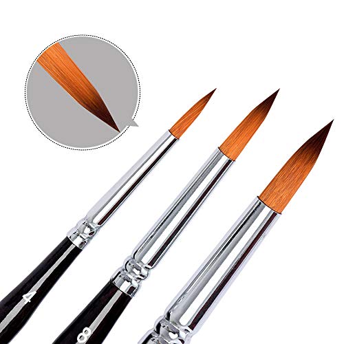 3 pennelli sintetici da viaggio, arte e pittura, setole rotonde e scure, manico corto per pittura a olio acrilico e acquerello