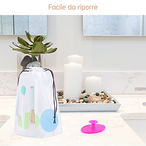 Set di Pennelli per Strumenti di Bellezza, 4 Pezzi Spazzola Pulizia Viso, 1 Pezzo Pennello Esfoliante, 1 Pezzo Pennello per Maschera, 5 Pezzo Borsa Portaoggetti, Morbido Delicata Skin Care