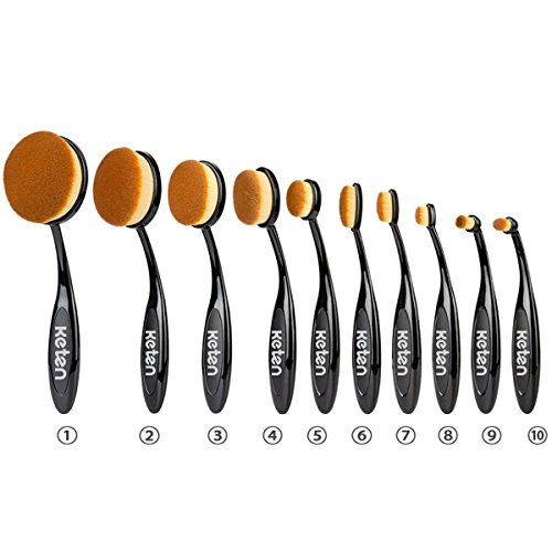 Set di pennelli da trucco ovali, professionale, 10 pezzi, con morbide setole e design ovale, include ovetto per la pulizia dei pennelli