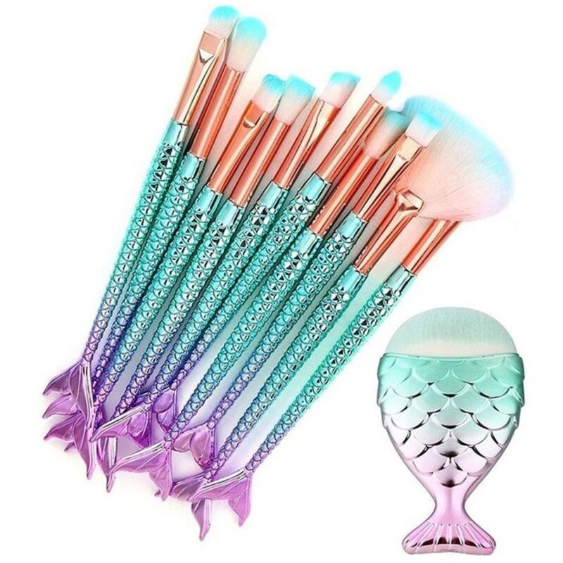 Distinguiti dalla massa con questi pennelli per il trucco ispirati alle sirene. I manici dei pennelli sono in verde-blu-rosa ombré e la barra di collegamento è in oro rosa. Le setole si abbinano perfettamente al manico in bianco ombré alla menta. Il set di pennelli per il trucco contiene 11 pennelli per tutte le parti della tua routine di trucco. Uno dei pennelli è diverso dagli altri perché è corto e sembra un pesce. Non importa se è il tuo primo set di pennelli per il trucco o un aggiornamento, questo set può aiutarti a perfezionare il tuo look! - Set di pennelli da trucco con 11 pennelli abbinati - Ogni pennello di cui hai bisogno per un look perfetto - Pennelli per il trucco dal design divertente Specifiche: Colore: multicolore Materiale, setole: nylon Materiale, manico: plastica Numero di spazzole: 11 La confezione contiene: 11 pennelli per il trucco