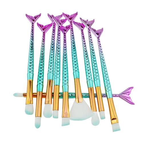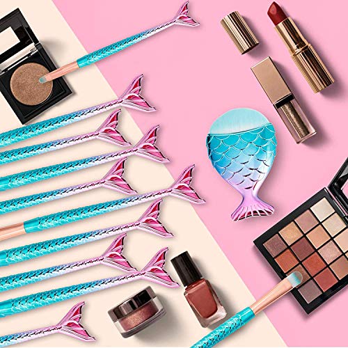 Set di Pennelli Trucco,Spazzole per Bellezza a Forma di Sirena 11 Pezzi Multicolore Cosmetiche Pennello Professionale Make up Pennelli per Fondotinta, Crema in Polvere, Fard, Ombretto, Sopracciglio