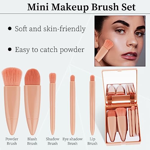 5 Mini Pennelli Da Trucco Da Viaggio Con Specchio Set Di Pennelli Da Trucco Da Viaggio Custodia Compatta Impilabile Delicata E Bella