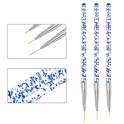 Pennelli per Unghie Pennelli per nail art Gel Liner Blu,3 Pezzi di Unghie UV Gel Penna di Pittura Decorazioni Unghie Penne Dotter