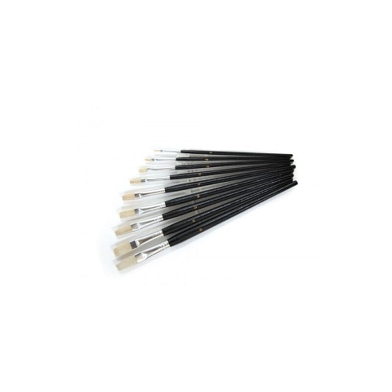 Set di pennellini a punta piatta che garantisce una stesura morbida del colore. Ideali per acquarello e tempera.
