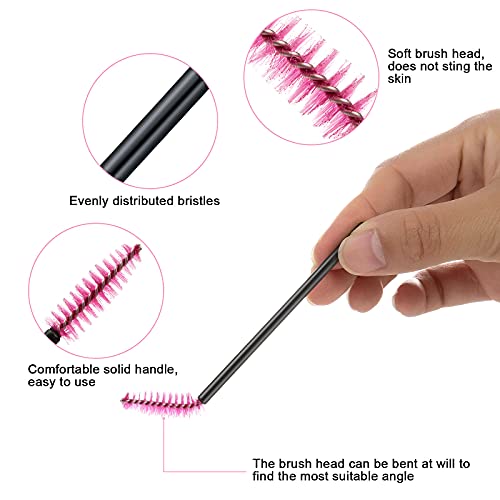 【3】: Quantità - Il pacchetto di pennelli per ciglia include 50 pezzi di teste nere + 50 pezzi di teste rosa + 50 pezzi di teste blu + 50 pezzi di rosa rossa. Quantità sufficiente per l'uso quotidiano. Non è più necessario pulire le spazzole con un liquido detergente