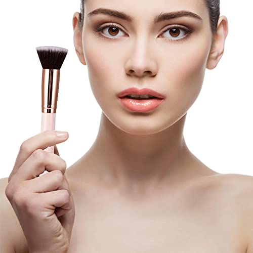 Pennello per Fondotinta,Pennello per fondotinta Kabuki,Pennello per Fondotinta con Punta Piatta per Lucidare, Miscelare e Sfumare il Trucco Sul Viso(Rosa)