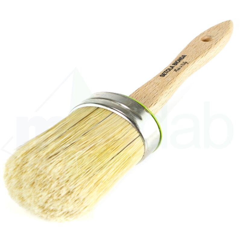 Pennello ovalino - con manico in legno. Realizzato con setola bionda.