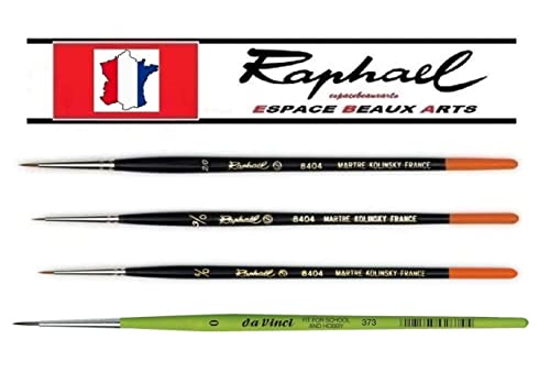 Pennello Raphael Series 8404, kolinsky rosso sabbia con pennello, misura 4/0, 3/0, 2/0 e davinci 373