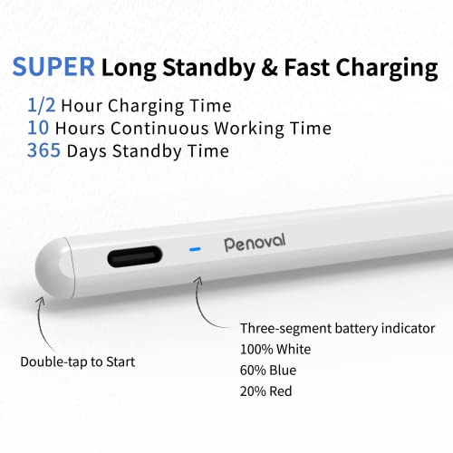 Penoval Penna stilo per iPad Matita Penne stilo attive Penna da disegno con rifiuto del palmo, sensibilità all'inclinazione Penna a lunga attesa, compatibile con iPad Pro 11/12.9, iPad Air 5, AX pro