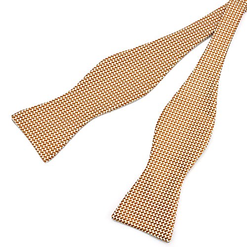 Pensee - Papillon da uomo, stile moderno, geometrico, in seta, vari stili Plaid rettangolari color marrone dorato e argento. Taglia unica