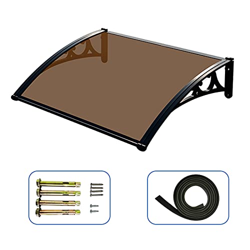 Pensilina in Alluminio,Tettoia per Balcone di Casa,Pensilina Ad Arco Silenziosa in Policarbonato,Dimensioni Multiple,per Protezione UV Esterna,Marrone con Staffa Nera (60x60cm/24"x24")