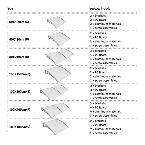 ϟ 【Buon materiale】 La tenda da sole è realizzata con staffa in materiale ABS, pannello in policarbonato e lega di alluminio, che ha una migliore durezza superficiale, un'elevata resistenza all'usura. Puoi usarlo con tranquillità e può proteggere bene i tuoi interni.