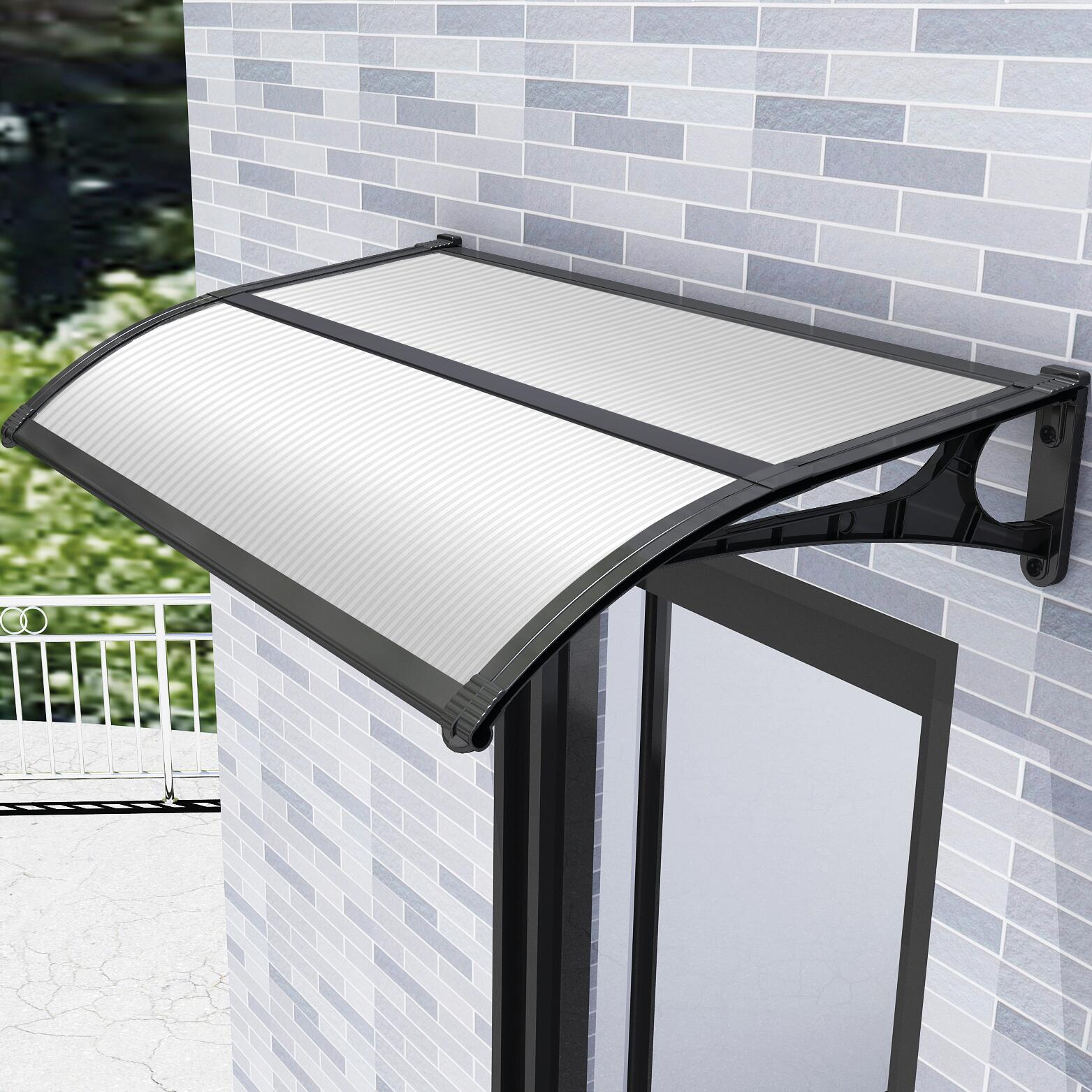 Pensilina con braccetti in ABS rinforzati colore nero. Profili in alluminio sul fronte ed il retro. Dotata di profilo centrale. Copertura in policarbonato alveolare bianca. Pensilina modulare. Prodotto da assemblare.. Ideale per proteggere dall'acqua piovana