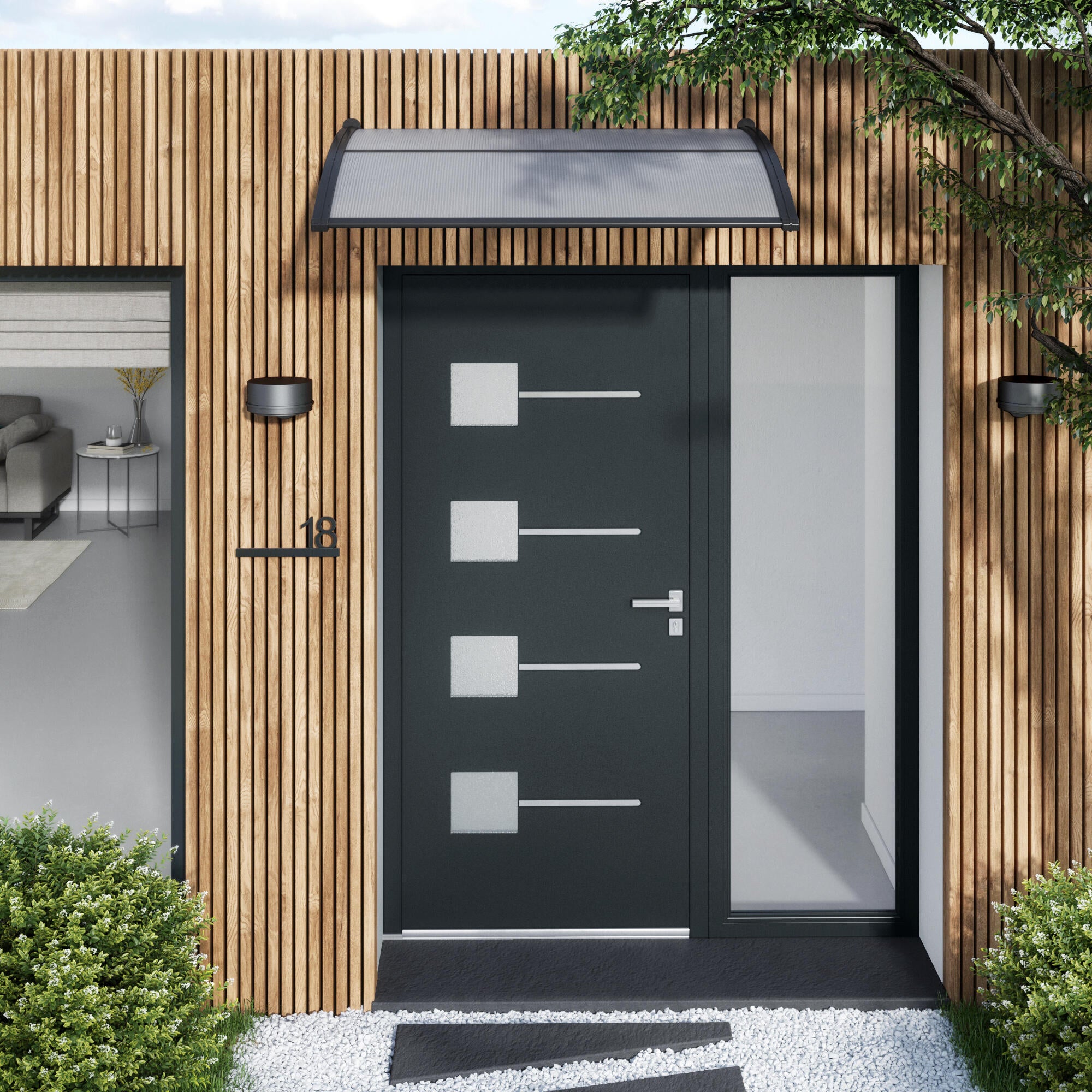 Pensilina in policarbonato alveolare trasparente L;
