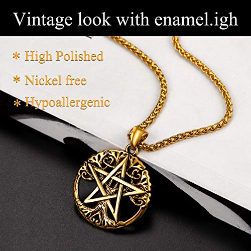 U7 Pentacolo Collana Uomo con Pendente, 03 Stile Wicca Ciondoli per Collane Uomo Oro, 55+5 cm Lunghezza Amuleti Talismano Ciondolo, Idee Regalo Protezione per Famigli Amici Amanti