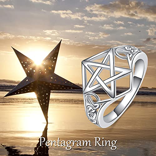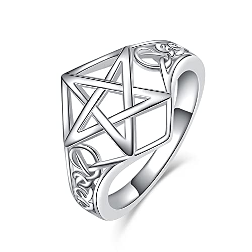 Pentagramma Stella Anello Argento Sterling Nodo Celtico Pentagramma Amuleto Anello Pentacolo Gioielli Regali Per Donne Ragazze (54(17.3))