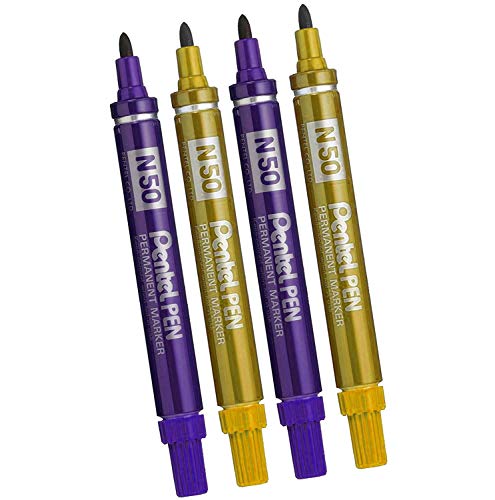 Pentel N50-Set di 8 pennarelli indelebili a pens. 1 per ogni colore: nero, Blu, Rosso, Verde, Arancione, Giallo, colore: marrone e viola