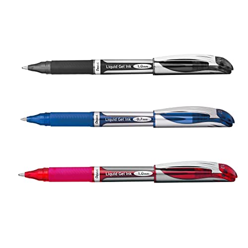 Pentel Energel BL57 - Penna roller con punta in metallo, pennino da 0,7 mm, nero, blu, rosso, confezione da 3