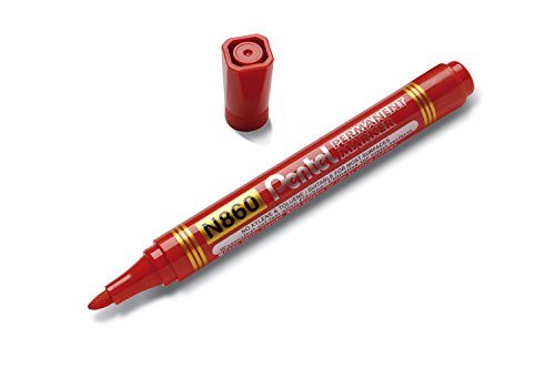 Pentel N860 Marcatore Permanente punta scalpello, 12 Pezzi, Rosso