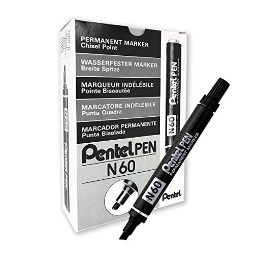 Pentel Pen N60 Marcatore Permanente Punta Scalpello Nero 12 Pezzi