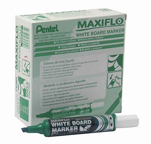 Pentel Maxiflo - Pennarello per lavagna con punta piatta, confezione da 12, colore: Verde
