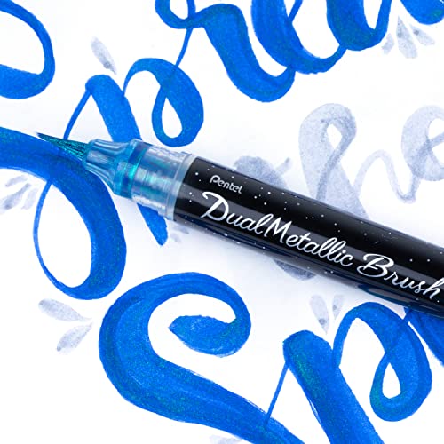 Pentel XGFH Dual Metallic Brush, pennello con inchiostro doppio colore blu + verde metallizzato 1 pz