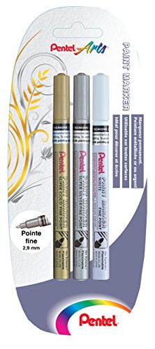 Pentel MSP10x3 XZW - Set di 3 pennarelli a punta fine, colore: Oro/Argento/Bianco