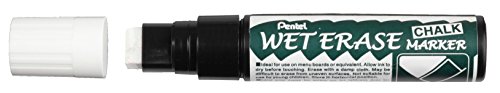 Pentel - Pennarello a gesso liquido semipermanente, punta grossa a scalpello da 15 mm, cancellabile con un panno umido, colore: Bianco