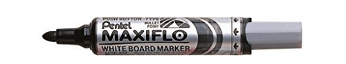 Pentel MWL5 M Whiteboard Marker Maxiflo con sistema a pompa punta rotonda, 2.5 mm, 1 pezzo, Nero
