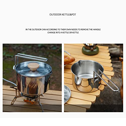 Pentola da Campeggio in Acciaio Inossidabile con Coperchio e Manico Pieghevole, Pentola da Campeggio Portatile di Grande capacità da 1 Litro Pentole da Campeggio per Campeggio