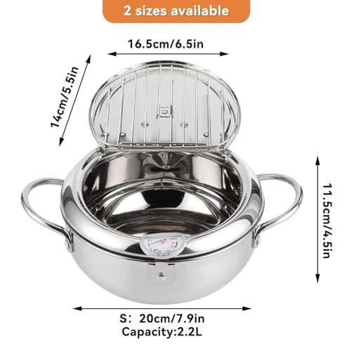 DESIGN DEL COPERCHIO: La padella per tempura in acciaio inossidabile in stile giapponese con coperchi può prevenire gli schizzi d'olio durante la frittura. impedisce la fuoriuscita di olio caldo e protegge le mani dalla bruciatura