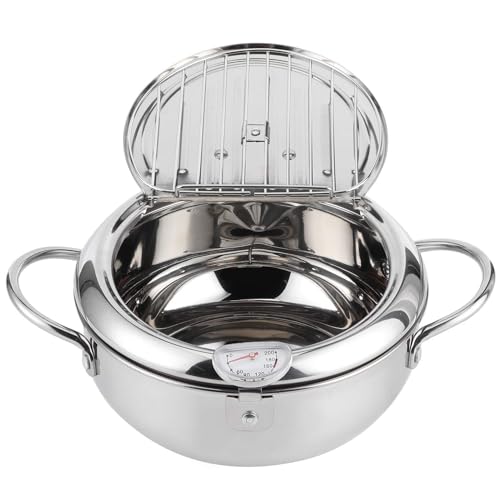 Pentola friggitrice Giapponese, Mini Friggitrice Ad Olio In Acciaio Inossidabile Con Termometro e Scolapiatti, Pentola per friggitrice, Fornello a induzione Pentola per pollo francese, pesce secco