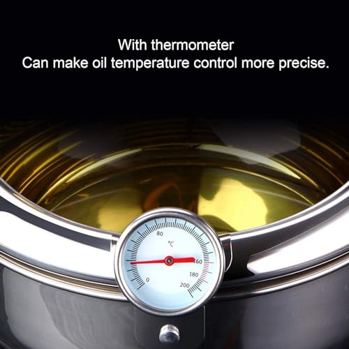 MATERIALE: Coppa olio con termometro e coperchio della griglia antigoccia è realizzata in acciaio inossidabile 304 per uso alimentare. Esecuzione squisita, struttura robusta, può essere utilizzata a lungo con sicurezza