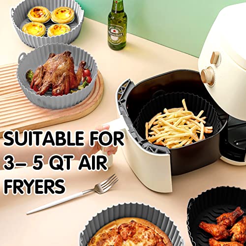 Pentola in Silicone per Friggitrice ad Aria 2 Pezzi, Fodera per Friggitrice ad Aria Riutilizzabile, Antiaderente Resistente al Calore Facile da Pulire (7,5 pollici Nero+Grigio)