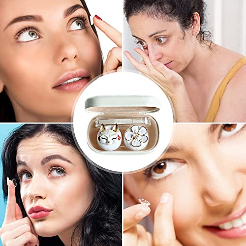 ✪Design a Forma di Piccola Volpe e Fiori di Ciliegio: L'elegante forma bianca è indimenticabile. Il porta lenti a contatto all'interno vanta un design distintivo di volpe e fiori di ciliegio che fa una dichiarazione. Apri la scatola ed è un altro splendido mondo!