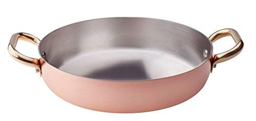 Pentole Agnelli ALCU11050 Tegame in Rame liscio stagnato a mano con 2 Maniglie in ottone, 50 cm
